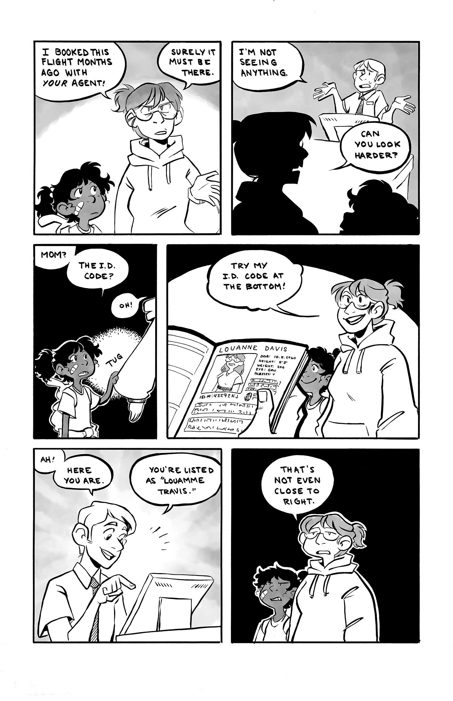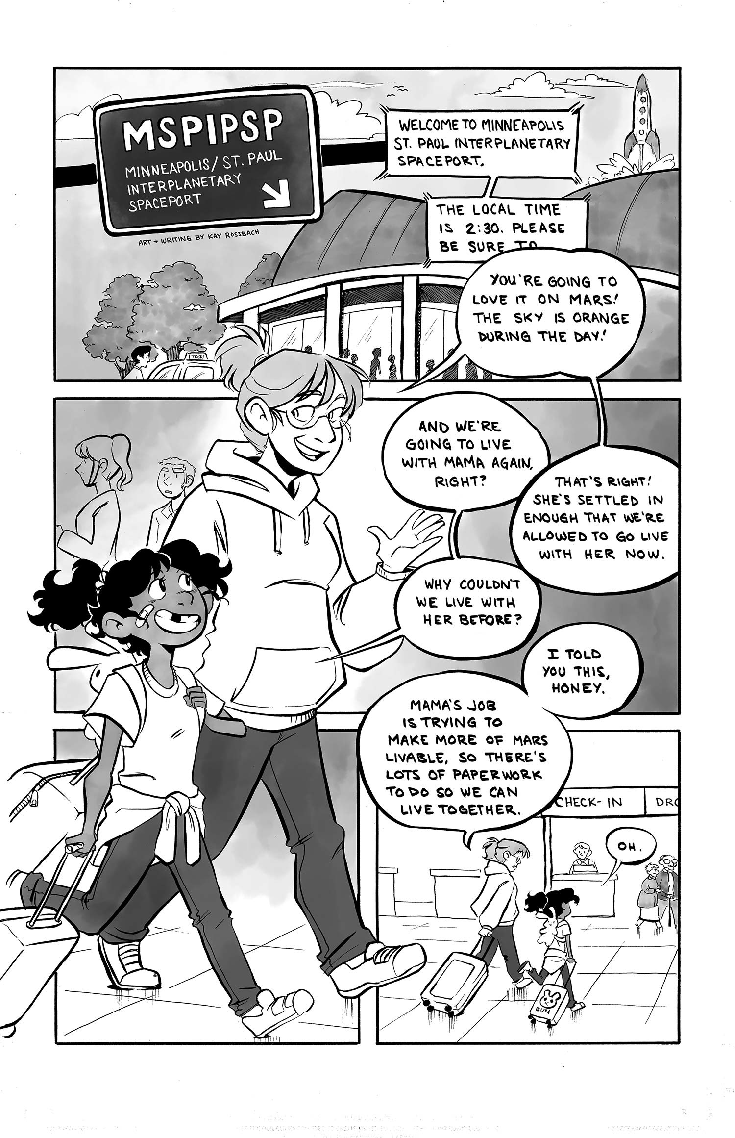 MSPIPSP (Minneapolis St. Paul Interplanetary Spaceport) is a one-shot comic published in Iron Circus Comics’ anthology FTL, Y’all!, which features stories surrounding the concept of faster than light travel. MSPIPSP follows the story of a mother and her daughter making an interplanetary move and everything going wrong, showing how not much has changed with bureaucracy since space travel became possible.